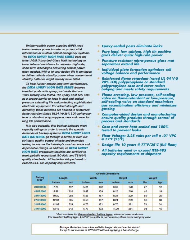 德克蓄电池HR系列